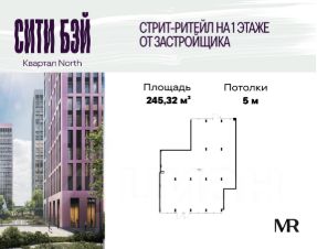 Продаётся коммерческое помещение свободного назначения с отдельным входом на 1 этаже жилого комплекса Сити Бэй от застройщика MR. Площадь помещения 245,3 м².