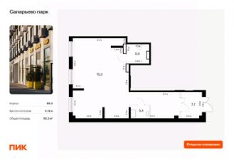 Продажа помещения свободного назначения 96,19 кв.м на 1-м этаже ЖК "МФК Тропарево Парк" в строящемся корпусе 2.2. Срок сдачи: IV Квартал 2025 года.