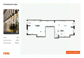 Продажа помещения свободного назначения 117,25 кв.м на 1-м этаже ЖК "МФК Тропарево Парк" в строящемся корпусе 2.2. Срок сдачи: IV Квартал 2025 года.