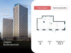 Продаётся помещение свободного назначения площадью 73.7 кв. м. в новостройке Левел Войковская по адресу Москва, САО, Войковский, Старопетровский проезд, вл 11, корп. 5. Помещение со свободной планировкой. Отдельный вход с улицы. Сто...