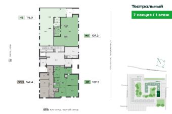 • Стрит-ритейл на первом этаже, встроенный муниципальный детский сад на 65 мест, площадки для спорта и отдыха.
