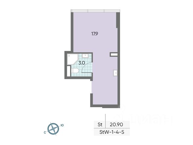 - Открытая планировка (зал: 68м2, санузел: 29м2);