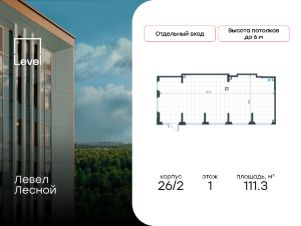 Продаётся помещение свободного назначения площадью 111.3 кв. м. в новостройке Левел Лесной по адресу Московская область, Красногорск городской округ, Отрадненское С/П, Отрадное пос., ул. Лесная, корп. 26/2. Помещение со свободной пл...