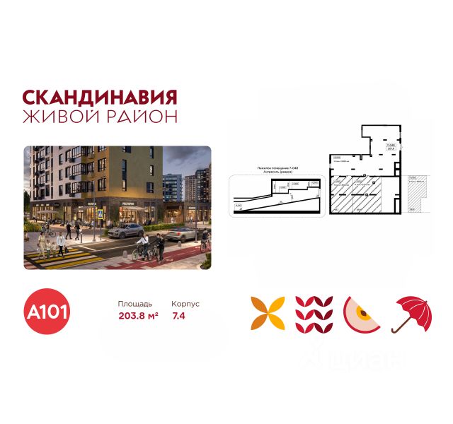 929077 . Предлагаем помещение свободного назначения формата street-retail, площадью 183.5 кв. м, расположенное на первом этаже 24-этажного жилого дома. Без комиссии для покупателя.