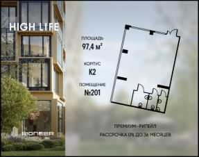 Помещение свободного назначения представлено в комплексе небоскребов HIGH LIFE в шаговой доступности от м. Павелецкая и Садового кольца.