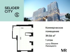 Очередь 4, корпус Башни Лисицкого. Площадь помещения 39,56 м².