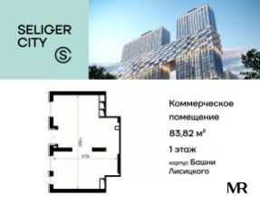 Очередь 4, корпус Башни Лисицкого. Площадь помещения 83,82 м².