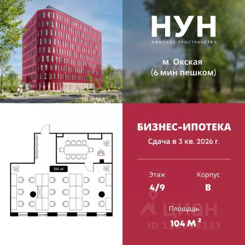 Продается офисное помещение площадью 104 м² в бизнес-центре NOON от застройщика Dominanta.