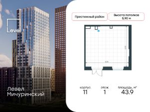 Продается помещение свободного назначения 43.90 кв.м. в проекте бизнес-класса Левел Мичуринский по адресу: Озерная улица, дом 1А. Помещение расположено на 1 линии улицы с высоким автомобильным и пешеходным трафиком в престижном Запа...