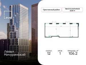 Продается помещение свободного назначения 106.20 кв.м. в проекте бизнес-класса Левел Мичуринский по адресу: Озерная улица, дом 1А. Помещение расположено на 1 линии улицы с высоким автомобильным и пешеходным трафиком в престижном Зап...