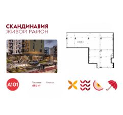 Продается торговое помещение площадью 491.00. на 1-м этаже ЖК "Скандинавия".
