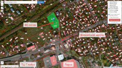 80 соток земли, 2-я линия Можайского шоссе, 100 метров от дороги. Хороший асфальтированный подъезд. Кадастровый номер: 50:20:0000000:310213. По ПЗЗ зона О1. Основные виды разрешенного использования: Объекты торговли , Объекты придорожного сервиса, О...