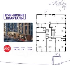 Продается торговое помещение площадью 138.10. на 1-м этаже ЖК "Бунинские кварталы".
