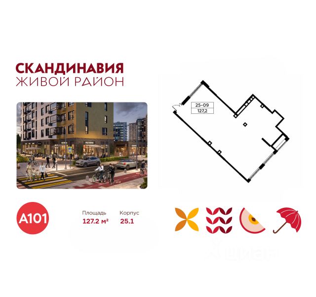 Продается торговое помещение площадью 127.20. на 1-м этаже ЖК "Скандинавия".