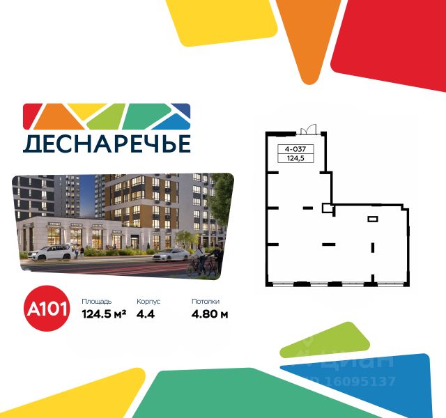 Продается торговое помещение площадью 124.50. на 1-м этаже ЖК "Деснаречье".