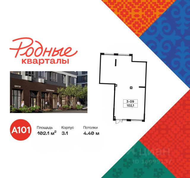Продается торговое помещение площадью 102.10. на 1-м этаже ЖК "Родные кварталы".
