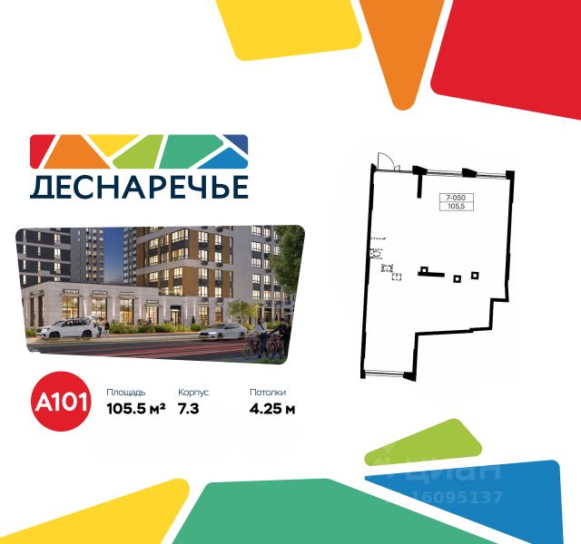 Продается торговое помещение площадью 105.50. на 1-м этаже ЖК "Деснаречье".