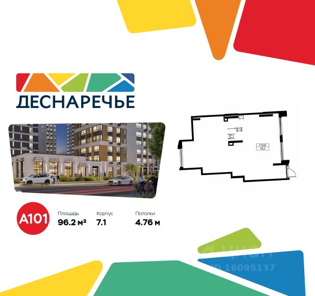 Продается торговое помещение площадью 96.20. на 1-м этаже ЖК "Деснаречье".