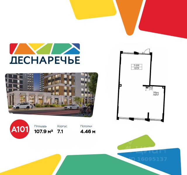 Продается торговое помещение площадью 107.90. на 1-м этаже ЖК "Деснаречье".