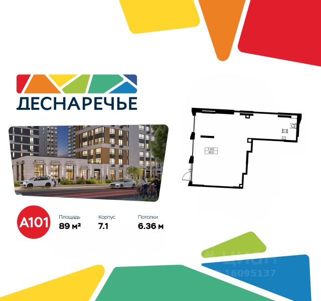 Продается торговое помещение площадью 89.00. на 1-м этаже ЖК "Деснаречье".