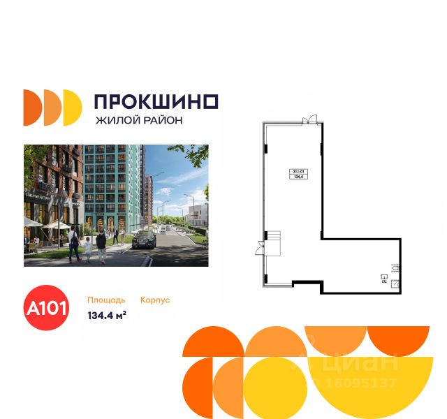 Продается торговое помещение площадью 134.40. на 1-м этаже ЖК "Прокшино".