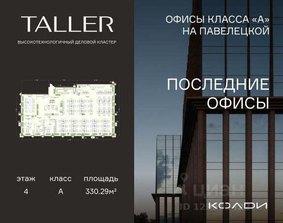 Комфортабельный офис площадью 330.29 м² на 4 этаже инновационного делового центра TALLER. Правильная форма лота с минимальным количеством несущих колонн и свободная планировка помещения позволяют обустроить рабочее пространство любого формата. А панорамное остекл...