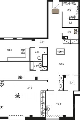 Продаются апартаменты с видом на город — отличный выбор для инвесторов. Общая площадь — 190.4 м².