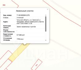 продажа земельного участка из земель населенных пунктов с кадастровым номером 71:09:000000:2276, площадью 1700 кв. м, адрес: Российская Федерация, Тульская область, Заокский район, д. Чегодаево, вблизи земельного участка КN 71:0...
