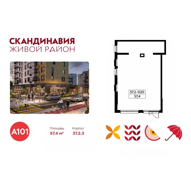 Продается торговое помещение площадью 57.40. на 1-м этаже ЖК "Скандинавия".