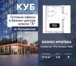 Продается офисное помещение площадью 17.5 м² в бизнес-центре КУБ класса "А" от застройщика Доминанта.