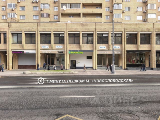 Торговое помещение расположено на первой фасадной линии Новослободской улицы. Сверхинтенсивные пешеходные потоки, достигающие показателей ~4 000 человек/час пик. Помещение в 100 метрах от станции метро "Менделеевская", в окружении плотной жилой застройки, админис...