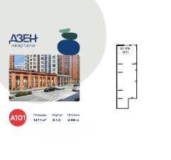 Продается торговое помещение площадью 147.10. на 1-м этаже ЖК "Дзен-кварталы".