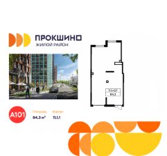 Продается торговое помещение площадью 84.30. на 1-м этаже ЖК "Прокшино".