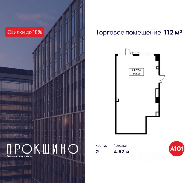 Продаётся торговое помещение площадью 112 кв. м. в Бизнес-квартал "Прокшино". Без отделки. Окна с видом во двор. Высота потолков 4.67 м. Выделенная электрическая мощность — 40 кВт. Отдельный вход со двора. Стоимость помещения — 67 512 480 руб. Способы оплаты и б...