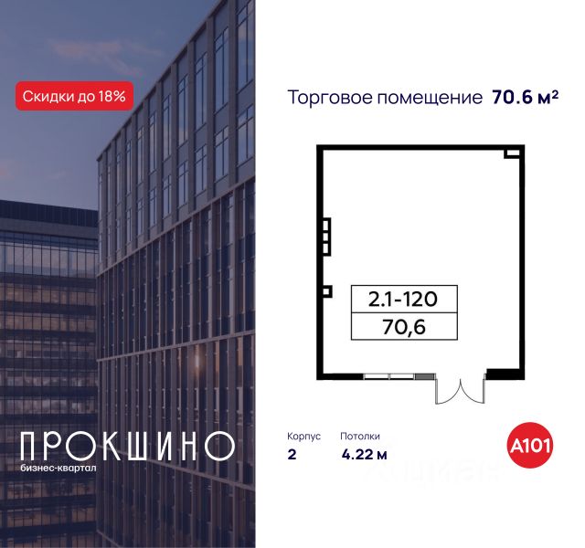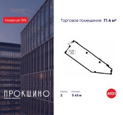 Продаётся торговое помещение площадью 71.4 кв. м. в Бизнес-квартал "Прокшино". Без отделки. Окна с видом на улицу. Высота потолков 4.22 м. Выделенная электрическая мощность — 20 кВт. Отдельный вход с улицы. Стоимость помещения — 37 345 056 руб. Способы оплаты и...