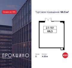 Продаётся торговое помещение площадью 66.5 кв. м. в Бизнес-квартал "Прокшино". Без отделки. Окна с видом на улицу. Высота потолков 4.22 м. Выделенная электрическая мощность — 20 кВт. Отдельный вход с улицы. Стоимость помещения — 37 057 790 руб. Способы оплаты и...
