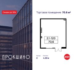 Продаётся торговое помещение площадью 70.6 кв. м. в Бизнес-квартал "Прокшино". Без отделки. Окна с видом на улицу. Высота потолков 4.67 м. Выделенная электрическая мощность — 30 кВт. Отдельный вход с улицы. Стоимость помещения — 39 850 876 руб. Способы оплаты и...
