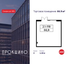 Продаётся торговое помещение площадью 66.9 кв. м. в Бизнес-квартал "Прокшино". Без отделки. Окна с видом на улицу. Высота потолков 4.22 м. Выделенная электрическая мощность — 60 кВт. Отдельный вход с улицы. Стоимость помещения — 39 101 043 руб. Способы оплаты и...