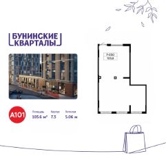 Продается торговое помещение площадью 103.60. на 1-м этаже ЖК "Бунинские кварталы".