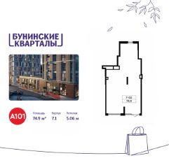 Продается торговое помещение площадью 74.90. на 1-м этаже ЖК "Бунинские кварталы".