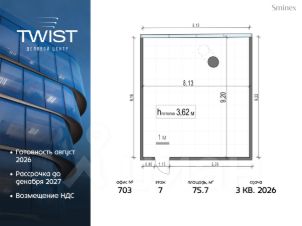 Готовность в августе 2026. Рассрочка до декабря 2027. Видовой офис площадью 75.7 кв. м. с панорамным остеклением ориентирован на Бутырскую улицу. Правильная форма и минимальное количество несущих конструкций позволяют максимально эффективно зонировать пространств...