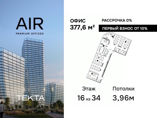 Продается помещение свободного назначения 377.60 м² на 16 этаже бизнес-центра ЭИР.
