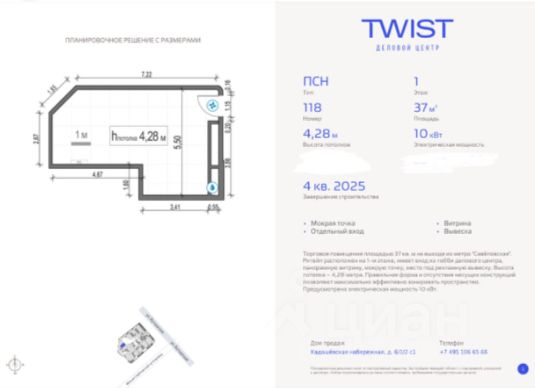 Лот 970202-Г Предложение от Собственника! Возможно использовать как арендный бизнес. Деловой центр "TWIST" - премиальная локация у метро "Савеловская".