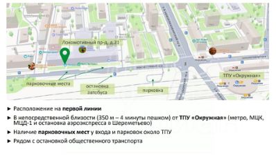 В непосредственной близости (350 м 4 минуты пешком) от ТПУ "Окружная" (метро, МЦК,