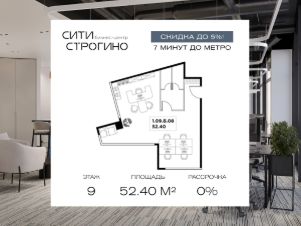 В продаже от застройщика комфортабельный Private-офис площадью 52.4 м² на 9 этаже в премиальном бизнес-центре Сити Строгино. Срок сдачи - 2028 год.