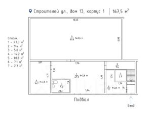 992257. Предлагаем к приобретению помещение свободного назначения, площадью 167,5 кв. м., расположенное в жилом доме на ул. Строителей. Цоколь и подвал. Без комиссии для покупателя.