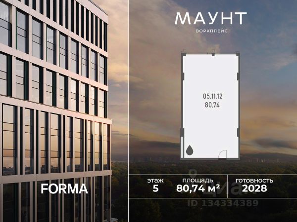 Продаётся офисное помещение площадью 75.48 м² на 6 этаже в новом бизнес-центре SET в башне K1.