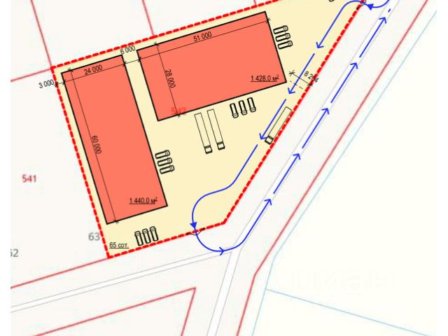• Общая площадь: 1 500 м² (склад 1 400 м² + офис 10...