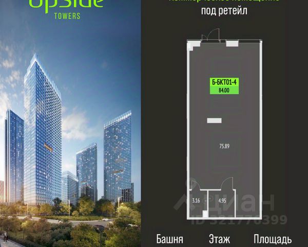 Уникальное коммерческое помещение под ретейл площадью 84 м² в сверхкварталеUpside Towers.