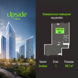 Уникальное коммерческое помещение под ретейл площадью 100.7 м² в сверхкварталеUpside Towers.